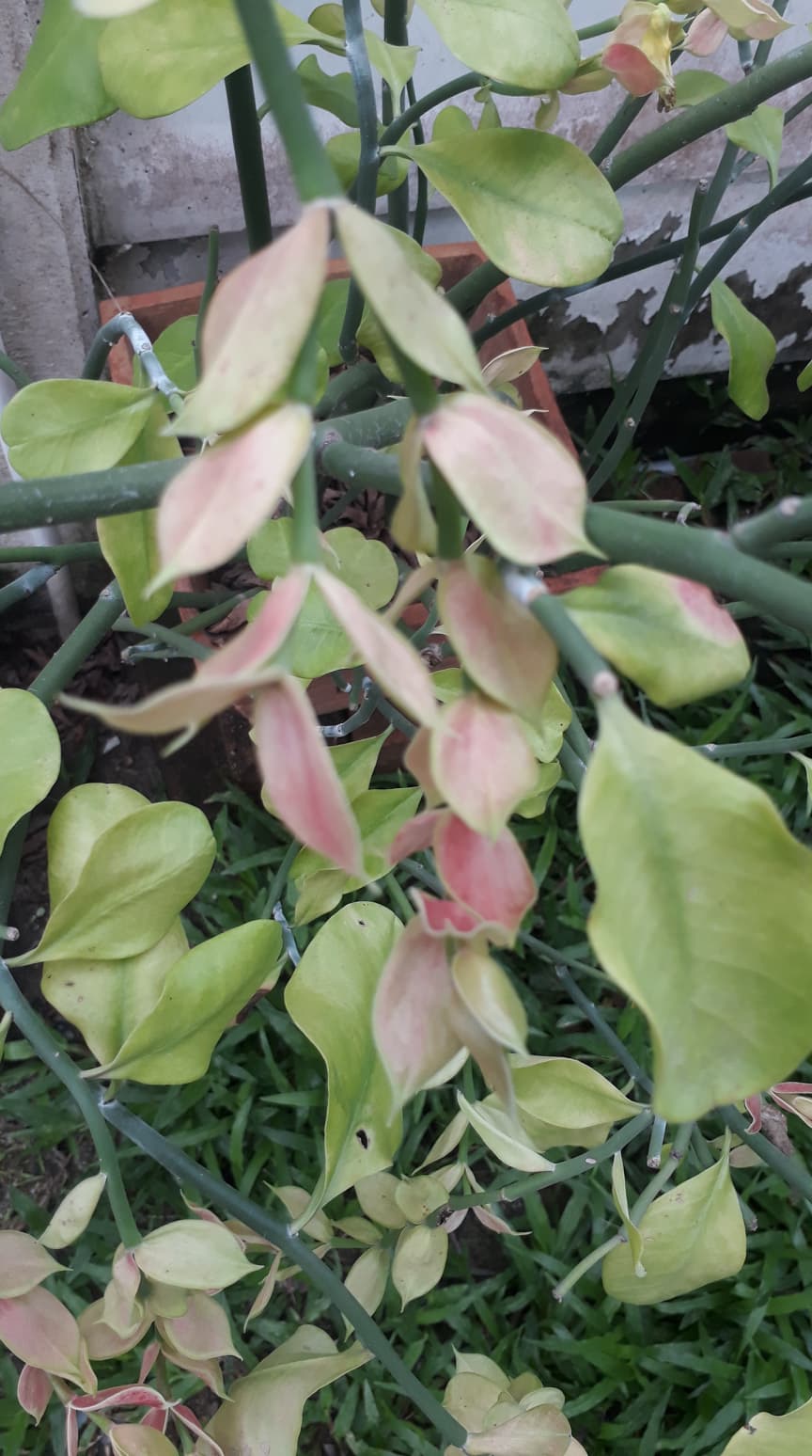 Euphorbia bracteata, heimisch in Mexiko. (Viele) Blätter bildet sie wohl nur unter künstlicher Bewässerung aus. Als Sukkulente braucht sie aber nicht viel bzw. oft Wasser. Ob sie als Bewohnerin tropischer Gegenden unsere Kälte toll findet, bezweifle ich aber.