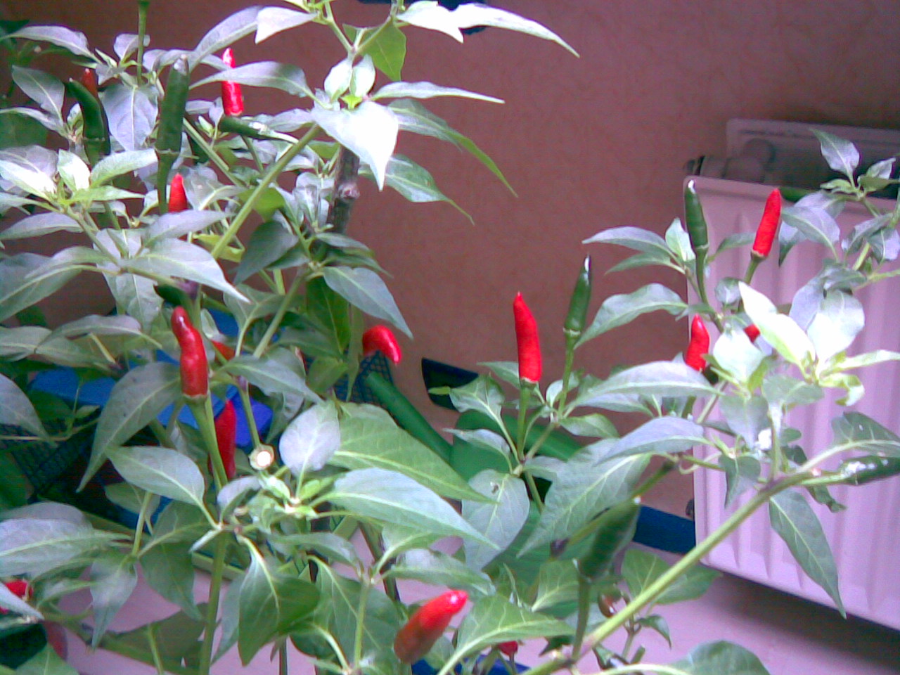 Meine diversen Rocoto sind derzeit je nach Sorte ca. hühnereigross und dunkelgrün, etwas Farbe brauchen sie also auch noch, Blüten sind aber ebenfalls massenhaft dran.