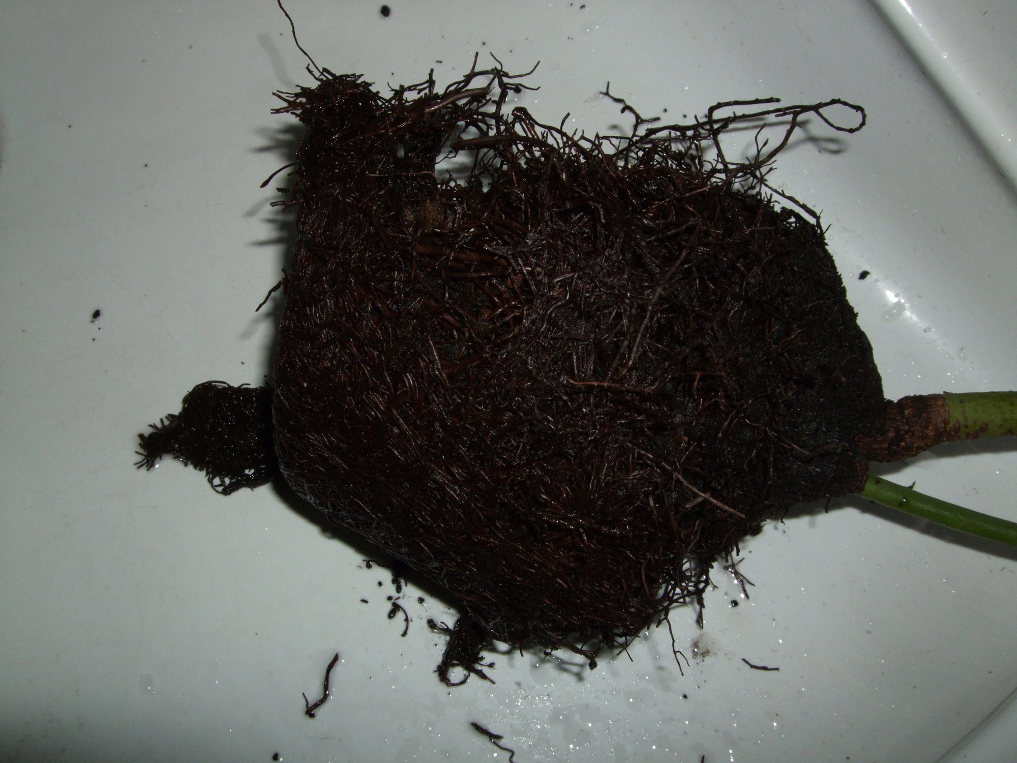 Außerdem sind die Wurzeln fast alle braun bis schwarz, fast überhaupt keine hellen Stellen, und die wenigen die es gibt sind auch weit dünkler als ich das bei anderen Pflanzen gewohnt bin.