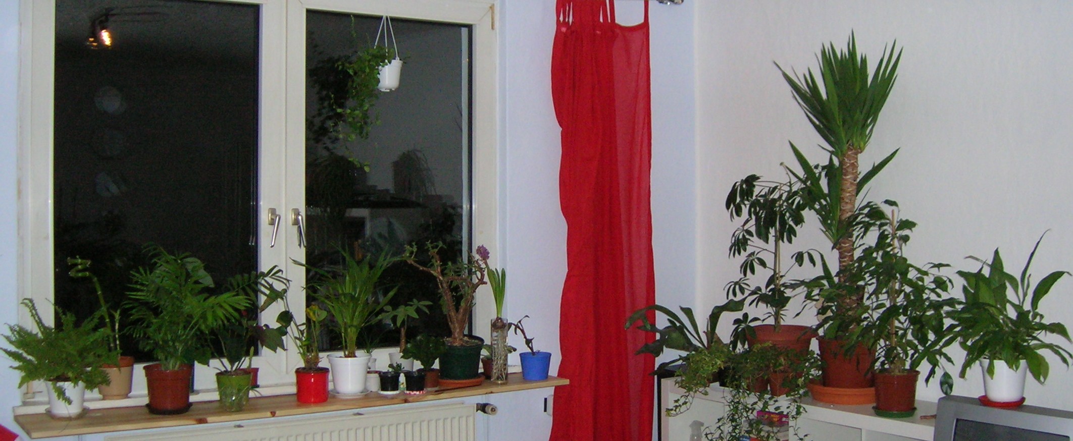 hab jetzt auch mal die pflanzenecken in der wohnung fotografiert. bei mir steht alles wild durcheinander. farne neben palmen und so...