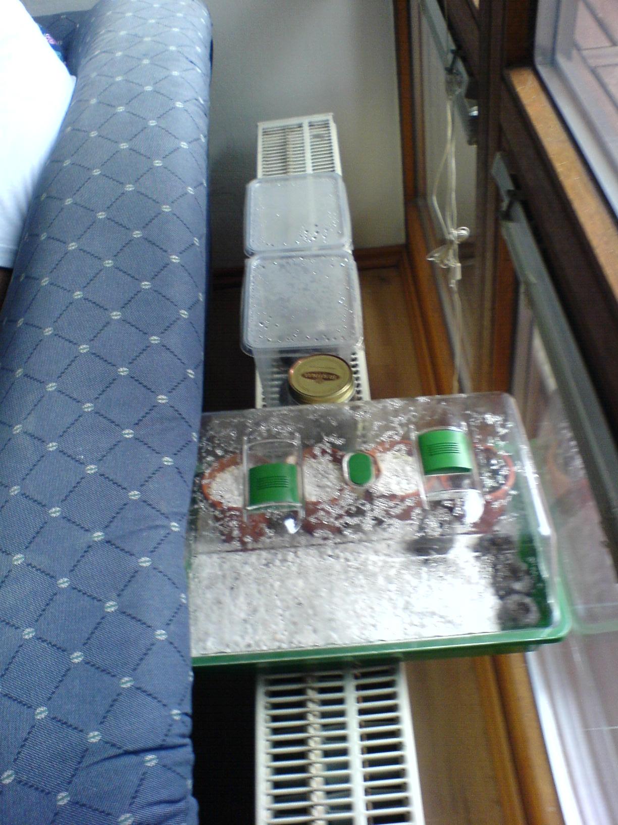 Ich kann dir die beiden Fotos zeigen- so schauts bei mir auf meinem Anzuchtfensterbrett aus- also vor 3 Wochen, mittlerweilen hab ich etwas umgeschichtet: