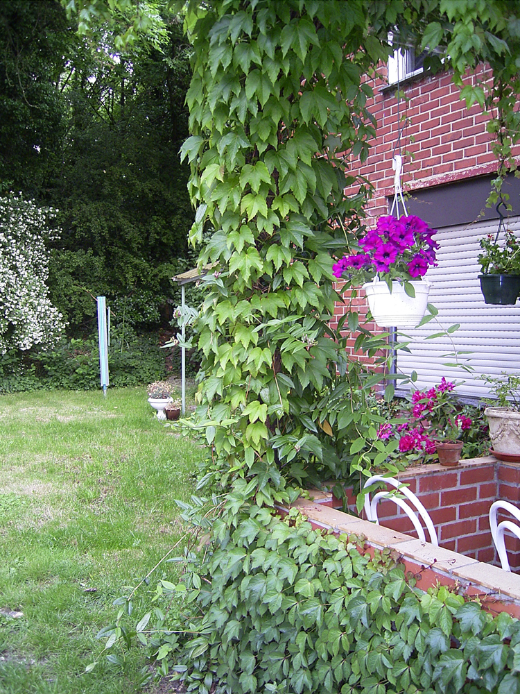 Bei mir rankt sich der wilde Wein um die Terrasse. Er ist scheinbar unverwüstlich, habe ihn mal ganz zurückgeschnitten weil wir ein echtes Wespenprob hatten ein Jahr. Tjo nun is meine Terrasse wieder zugerankt Wein kann auch ich net davon machen die Beeren bleiben winzig. Allerdings hinterlässt er auch auf dem Holz und Stein diese hässlichen braunen dinger wenn man ihn wegmacht