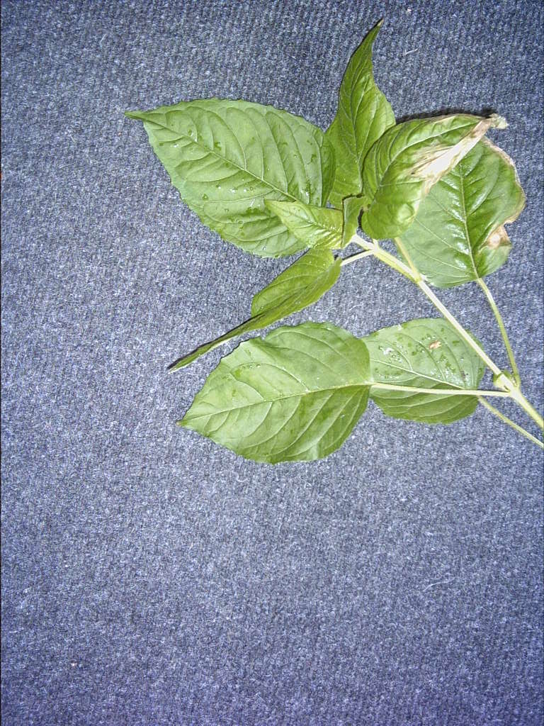 Das größte Blatt ist jetzt 8cm breit und 12 cm lang. 2 Blätter gegenständig, in den Blattachseln 2 weitere winzige Blättchen. Auf der Blattoberseite sind silberne Härchen, auch der Stengel ist behaart, wie bei Franzosenkraut. Die längste Internodie ist 7 cm lang. Die Pflanze ist leicht auszureissen und scheint sich durch unterirdische Wurzeln zu verbreiten. Sie kommt in großen Mengen sehr dicht vor, viele Quadratmeter.