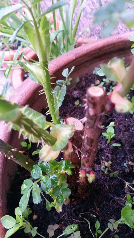ich habe mal wieder nicht widerstehen könne und vier 1,29-Euro-Beetrosen im Discounter mitgenommen. Inzwischen glaube ich allerdings, dass es sich um Wildlinge handelt. Was meint ihr? Sie haben zu viele Blätter, es sind sechs oder sieben statt fünf.