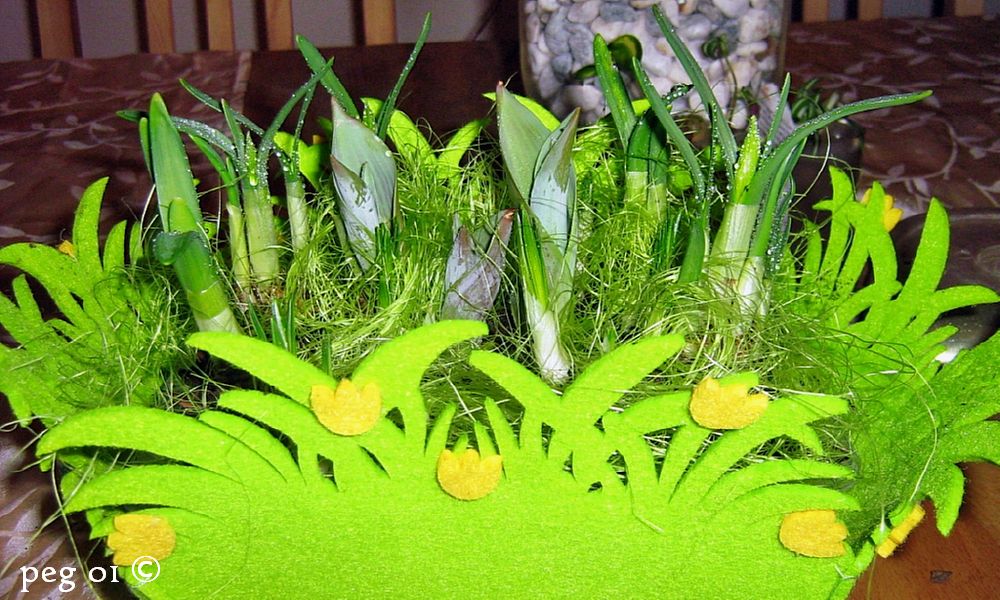 Frühling für die Wohnung. Das Körbchen steht noch ziemlich kühl - die Pflanzen(Tulpe, Narzisse u. Krokus) sollen ja erst März-April blühen.