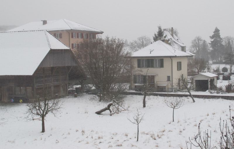 Häuser, Bäume - tief verschneit