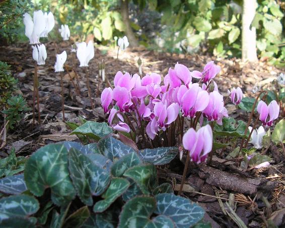 Und eine davon möchte ich euch mit diesem Beitrag gerne etwas näher bringen. Das Alpenveilchen (Cyclamen persicum). Jeder kennt es und fast jeder hatte wohl schon mal eines und dennoch sieht man es nicht wirklich oft. Der Grund; die meisten Leute pflegen es recht schnell zu Tode oder wissen gar nicht das es über Jahre hinweg eine treue Zimmerpflanze sein kann. Dabei wäre diese Pflanze so dankbar, wenn man mal den Dreh raus hat. Das wichtigste ist, sie nur von unten in den Untertopf zu gießen und nie so viel, das sich Staunässe bildet und das man gelbe Blätter und Verblühtes vollständig entfernt. Wenn man die Cyclamen dann auch noch in einem eher kühlen Raum hat, z.B: Schlafzimmer kann eigentlich nichts schief gehen. Besonders gerne stehen sie an Fenstern die auch im Winter regelmäßig zum Lüften geöffnet werden, denn die kühle Frischluft schadet ihnen überhaupt nicht. Manchmal muss man ein bisschen experimentieren, welche Fensterbank im Haus ihnen am besten behagt, bei mir ist es ein Süd/West- Fenster in meinem Schlafzimmer, wo sie ca. drei Stunden direkte Sonne haben und die Temperatur immer so zwischen 11 und 17 Grad liegt (Jenachdem ob das Fenster offen ist) Dieses Fenster platzt zur Zeit mal wider aus allen Nähten (siehe Foto), weil ich inzwischen so viele Cyclamen habe, das ich gar nicht mehr weis wohin damit. Sie blühen jedes Jahr von November bis in den März hinein und verwandeln mein Zimmer in einen Blütentraum. Ende April setzte ich sie immer alle im Garten aus und zwar genau dort, wo auch meine winterharten Herbstalpenveilchen (Cyclamen hederifolium) am besten gedeihen, zwischen Hainbuchenhecke und Moorbeet. Dort überdauern sie den Sommer ohne jede Pflege, die meisten ziehen sogar für ein Weilchen ein. Wenn dann im Sebtember die winterharten Alpenveilchen zu blühen beginnen treiben auch sie wider frischen Grün und setzten bis Ende Oktober wider eine Menge Blütenknospen an. Dann wird es wider Zeit sie einzutopfen und ins Haus zu holen wo sie dann wider monatelang blühen. Mein ältestes Alpenveilchen blüht bei mir so heuer schon den vierten Winter und es wurde bisher jedes Jahr etwas größer.