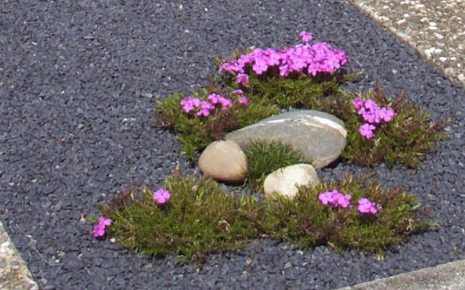 Besonders die Walzenwolfsmilch, aber auch der Polster-Phlox, haben den Vorteil, daß sie mit relativ wenig Wasser auskommen, also auch trockene Sommern eher überstehen als andere Pflanzen.