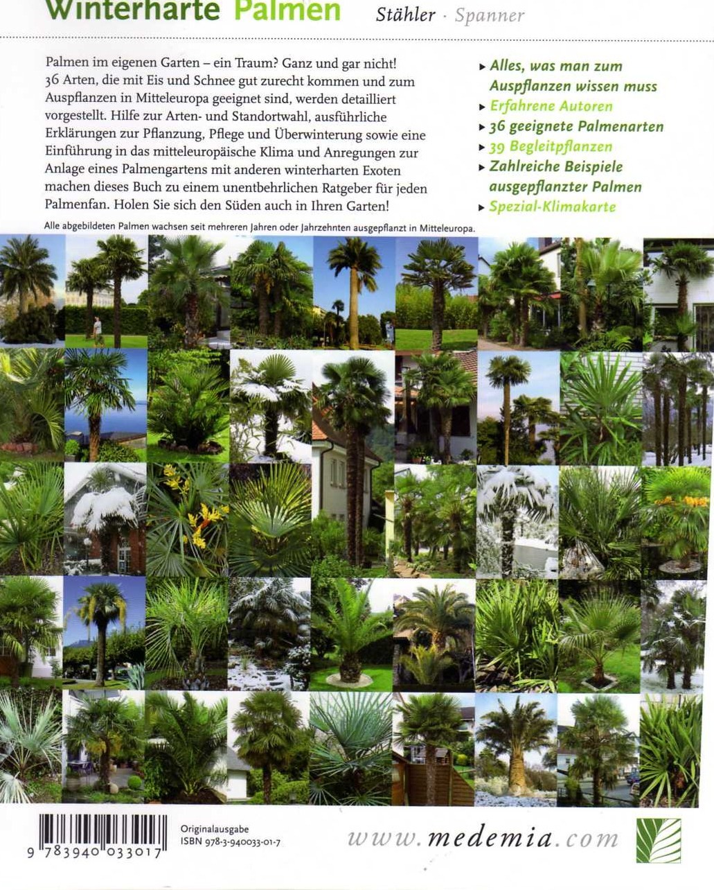 Mario Stähler&Tobias W.Spanner geben hier ausführliche Auskunft über die Biologie der Palmen, Klima, Kultur im Freiland, anlegen eines Palmengartens inkl. Begleitpflanzen, Erste Hilfe bei Kulturfehler und Schäden, Tiere und Krankheiten, sowie sehr ausführliche Palmenportraits von 36 möglichen Auspflanzkanidaten.