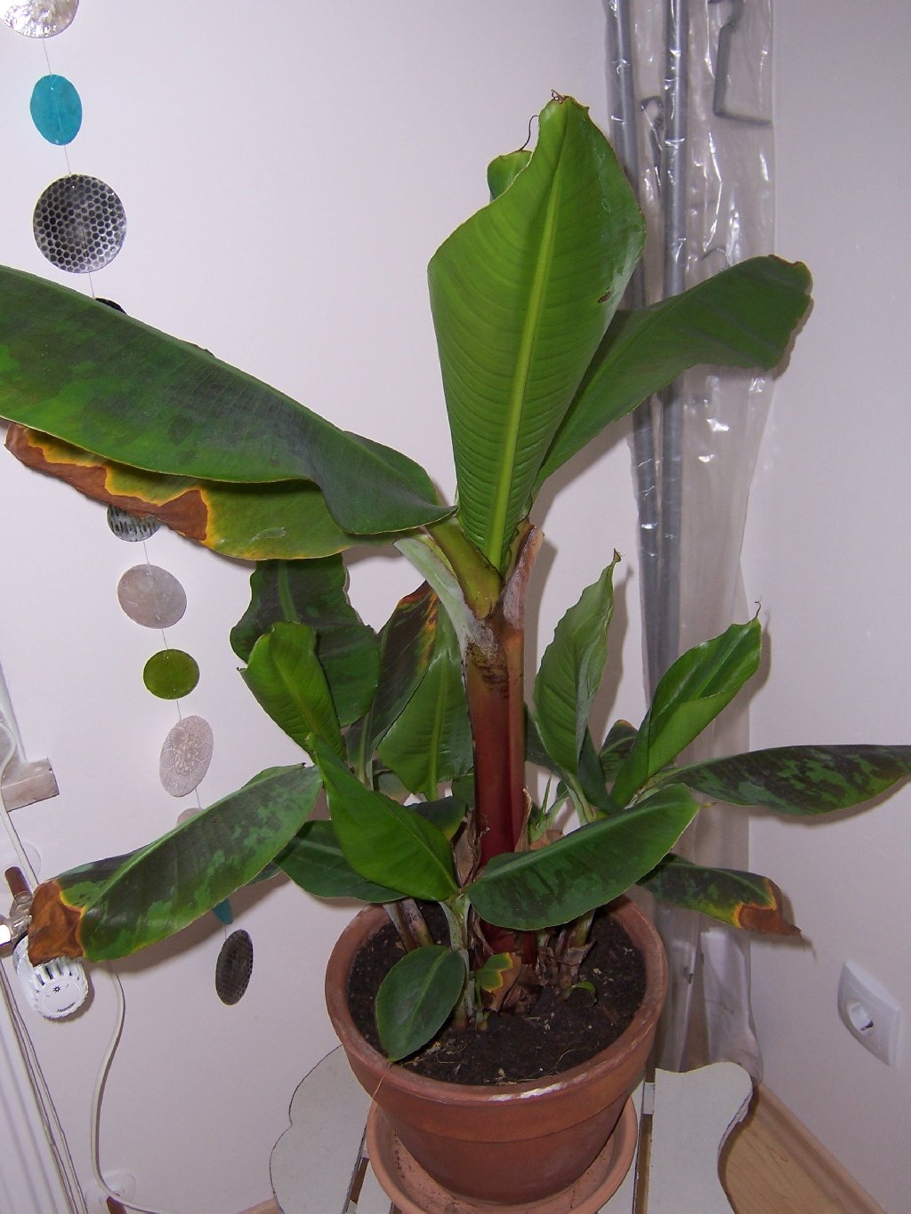 Die Super Dwarf Cavendish liegt frei gepflanzt bei 1,50m, im Topf wird sie auch nicht ganz so groß.
