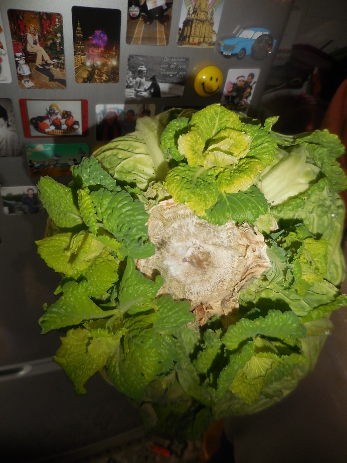 Ich habe den Wirsingkohl im Februar gekauft und da mal für Mittag gebraucht, den Rest in der Küche liegen lassen (ok, vergessen = dachte aber der wäre dann irgendwie schimmlig oder so, nix, der bildete einfach kleine Kinder).
