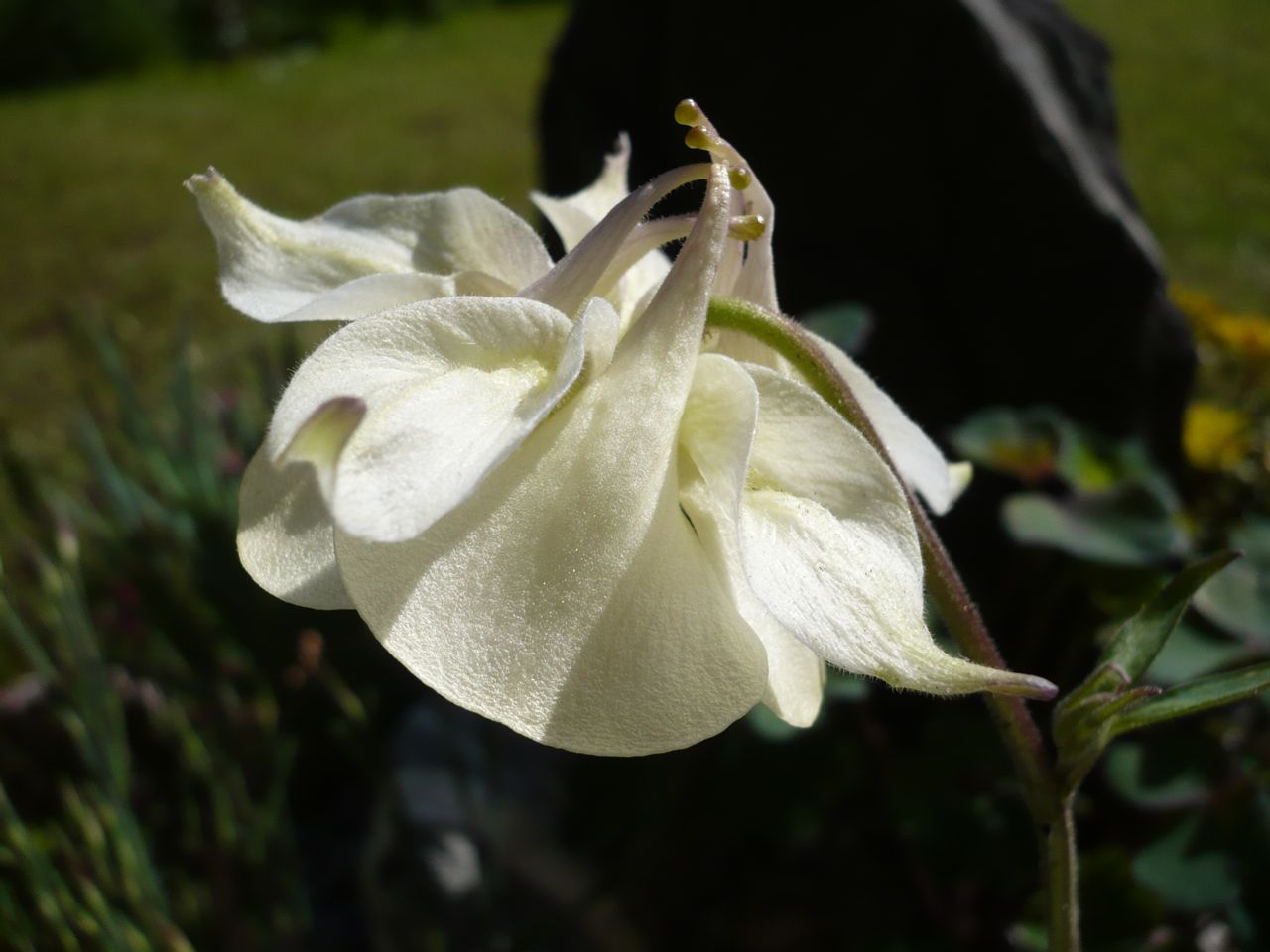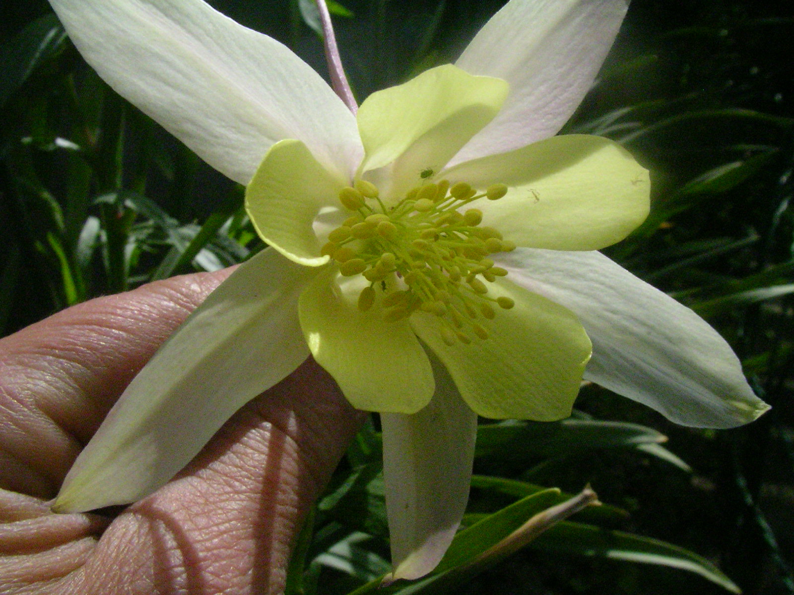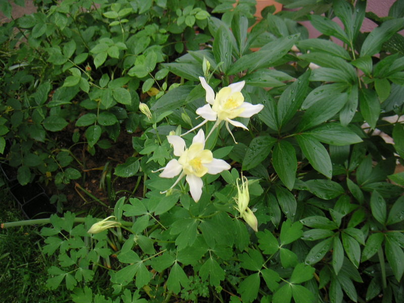 Die duftende Aquilegia fragrans im Topfalpinum, hat ihre erste Blüte nun voll entwickelt.