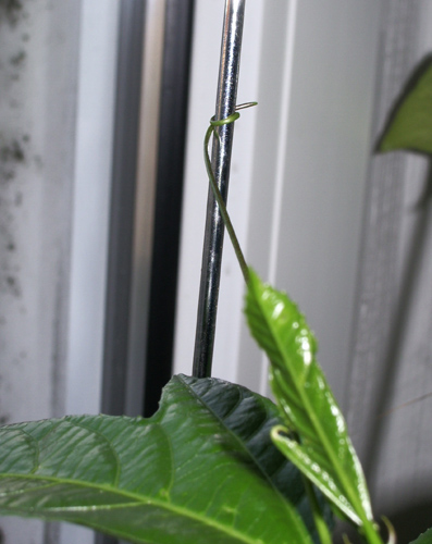 Naja, sie hat ja auch gerade erst damit angefangen. Die zweite (im gleichen Topf) bekommt auch schon ein kleines Rankärmchen.