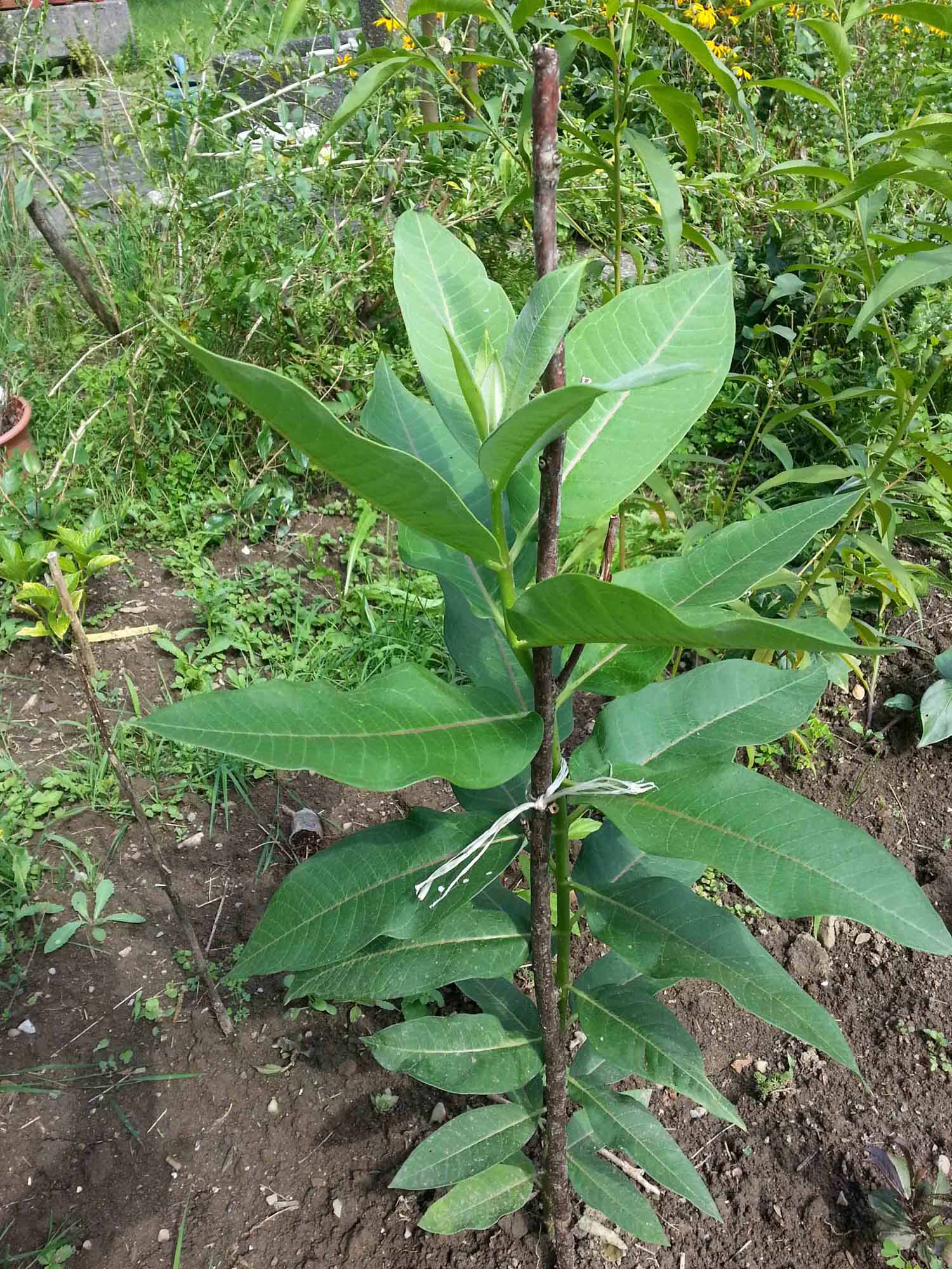 In meinem Garten wächst seit diesem Frühling eine Pflanze von selbst ca. 70 cm. hoch. Die Blätter haben eine rote Ader und glänzen. Sie sind gegenstädig und wechseln sich paarweise um 90 Grad. Ein kleines Blatt ist abgefallen, da trat milchiger Saft aus. Nun habe ich in der selbe Umgebung ebefalls eine solche Pflanze gesehen, denke sie ist einige Wochen da. habe im Internet keine solch Pflanze gefunden. Wenn man diese kennen würde, wüsste man ob die ev. im Winter geschützt werden müsste.