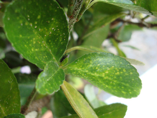 Der Befall ist ziemlich heftig und umfasst sowohl die Blätter (Ober- und Unterseite) wie auch den Stamm.