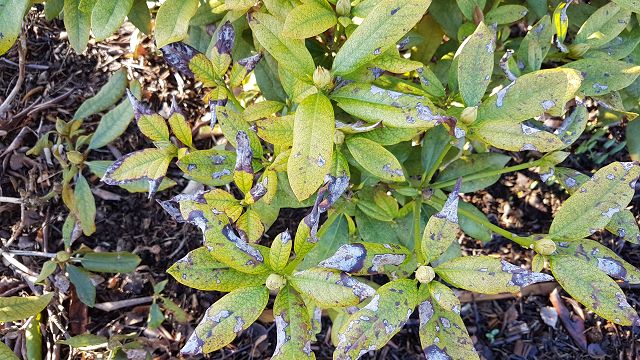 Ich habe vor ein paar Jahren versucht eine Rhododendronhecke anzulegen. Jetzt werden langsam die Blätter kleiner und die Farbe