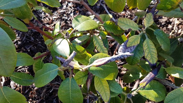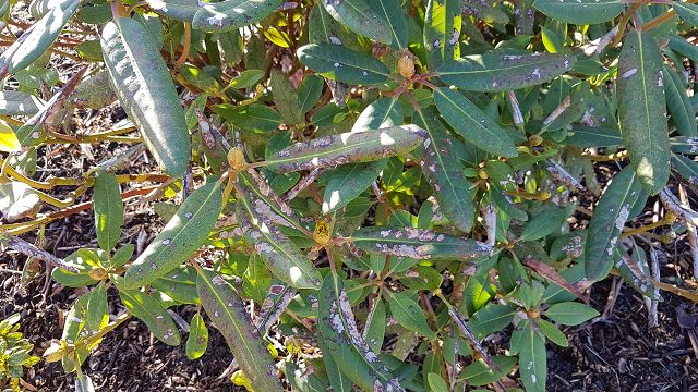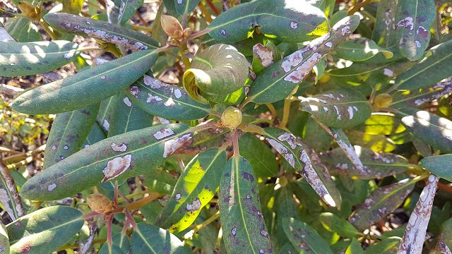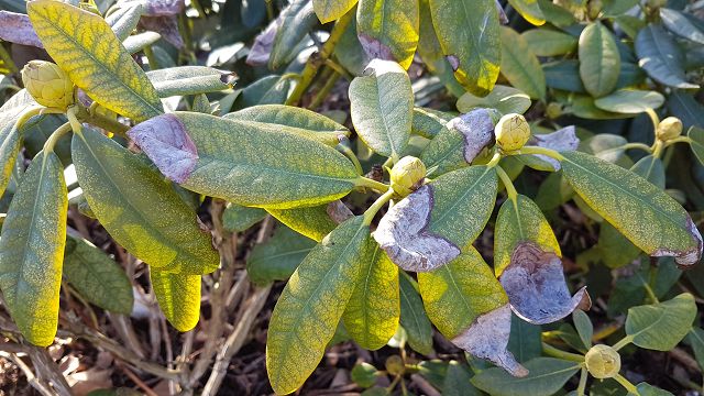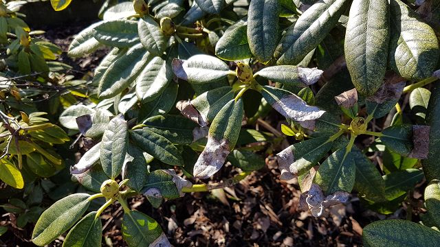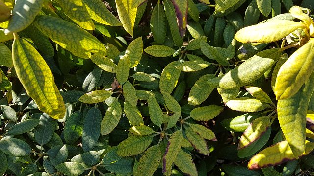 Ich habe vor ein paar Jahren versucht eine Rhododendronhecke anzulegen. Jetzt werden langsam die Blätter kleiner und die Farbe