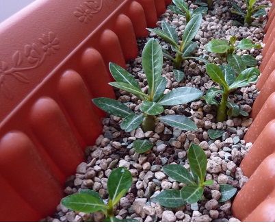 Eine Weiße aus dieesm Trio entwickelt sich hingegen sehr gut, eine andere (welche Blütenfarbe die noch bekommen soll, weiß ich nicht mehr, entweder rot oder weiß) die ist auch immer noch nicht ganz fest am Caudex. Die dümpelt da auch vor sich hin. Bildet aber neue Blattansätze aus..