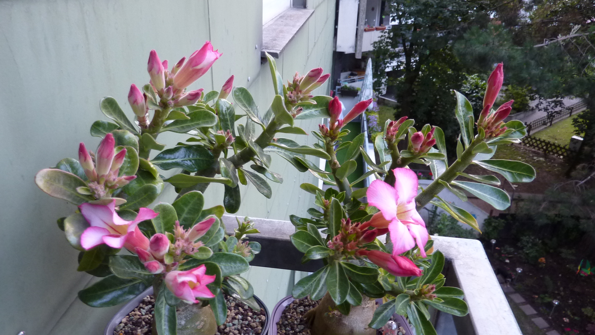 ich wollte Euch mal meine 2014er zeigen, die auf der Sonnenseite standen, haben schöne Knospen gebildet, auch meine "Schiefe", die anderen jedoch, die nur einen halben Tag Sonne hatten, haben gemuckscht. Bis auf eine Knospe, mal sehen, ob sie auch aufgeht.