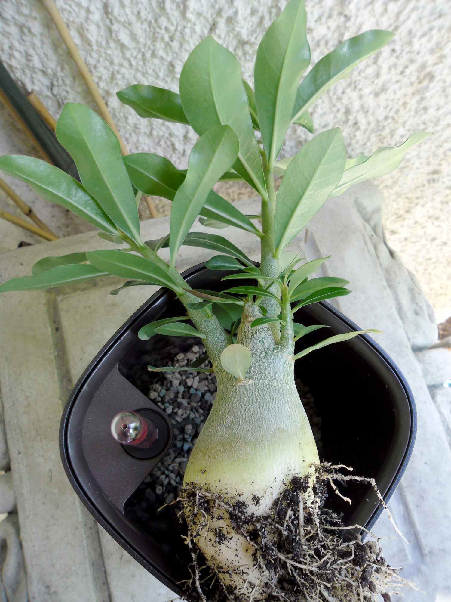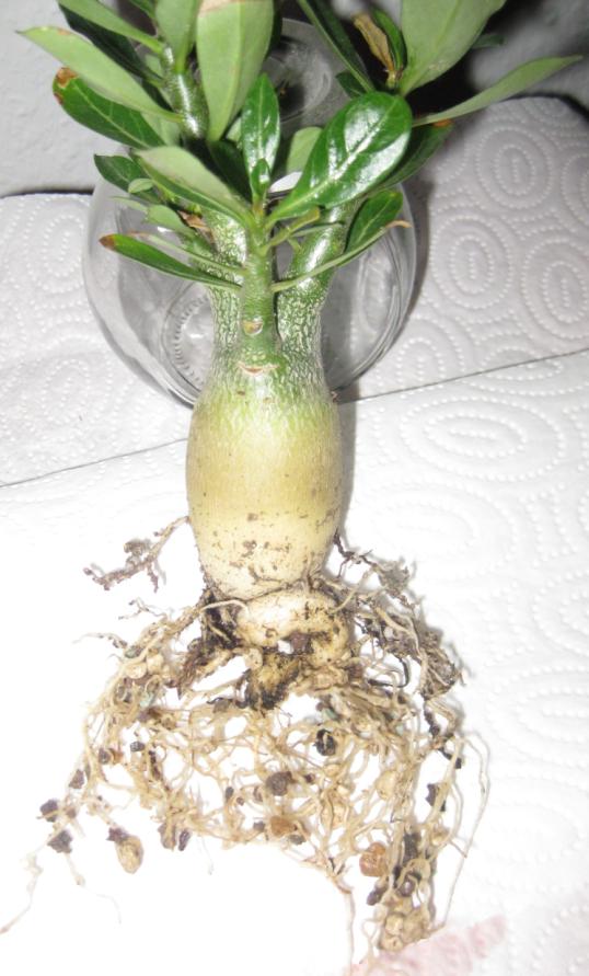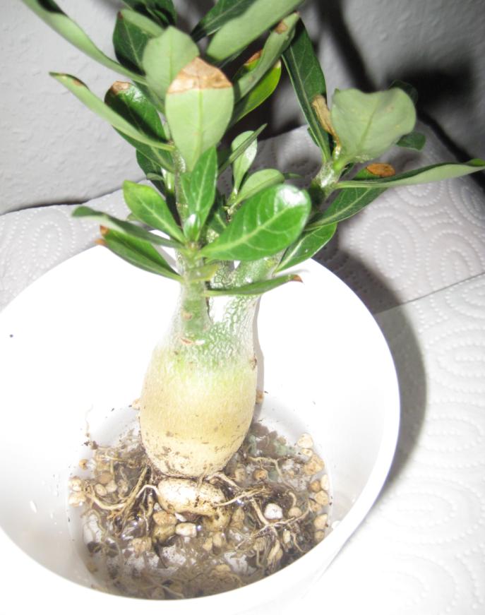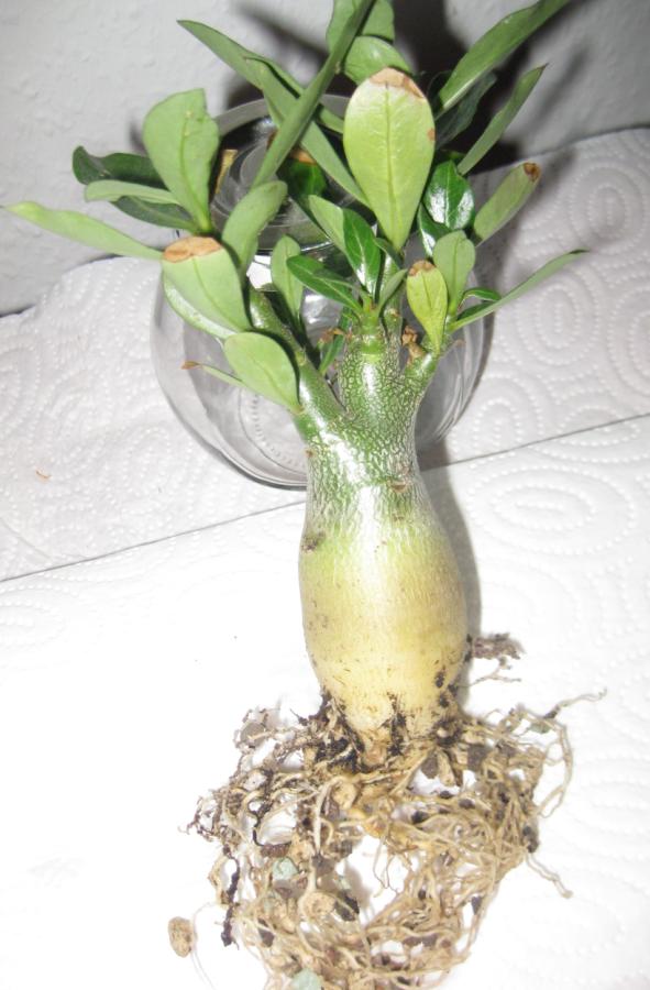 Ich habe im vergangenen Frühjahr ja auch meine große A. arabicum verloren, der sah man äußerlich lange Zeit nichts an, denn sonst hätte man ja noch ein Rettungsversuch starten können. Gesehen habe ich es erst, als der Caudex braune Flecken bekommen hat. Den Caudex habe ich dann auseinander geschnitten, der war innen zum Teil hohl und ganz braun – damals (und auch heute noch) hatte ich keine Ahnung an was es gelegen hat, die Pflanze wurde vorschriftsmäßig hell, kühl und trocken überwintert .