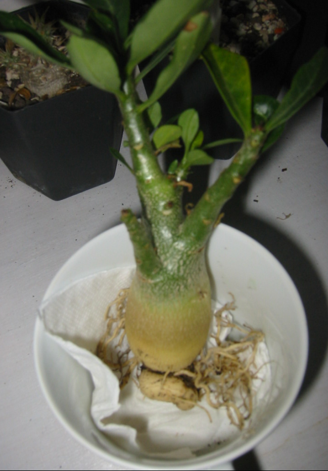 Ich hab auch eine Pflanze, die einen „etwas“ weicheren Caudex als die anderen hat. Nachdem sie nach einer winzig kleinen Wassergabe nicht fester geworden ist, lasse ich sie trocken stehen, sie hat allerdings keine Blätter mehr, sondern ist nackig.