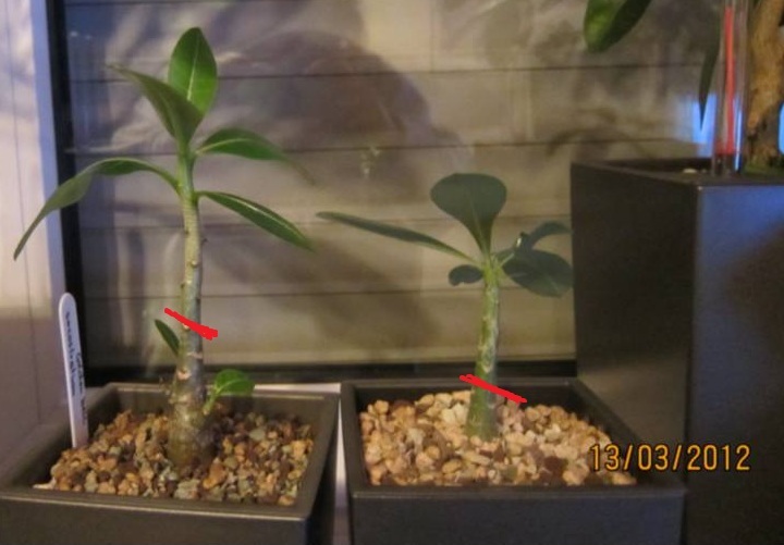 Ich weiß ja nicht, wie die unterirdisch aussehen, ob der Caudex schon mobbeliger ist. Selbst wenn nicht, können die in dieser Saison gewaltig aufholen, wenn sie draußen bei jeder sich bietenden Möglichkeit stehen und sich sonnen. Es können ebenso an dem jetzt noch fast kahlen Hauptstamm bei beiden Pflanzen Verzweigungen/neue Triebe wachsen.