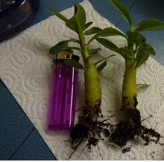 Eine Weiße aus dieesm Trio entwickelt sich hingegen sehr gut, eine andere (welche Blütenfarbe die noch bekommen soll, weiß ich nicht mehr, entweder rot oder weiß) die ist auch immer noch nicht ganz fest am Caudex. Die dümpelt da auch vor sich hin. Bildet aber neue Blattansätze aus..