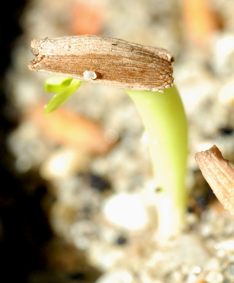 Sie hat bisher noch keine richtigen Blätter bekommen und die Keimblätter fallen nacheinander ab. Ist sie vielleicht gleich in den Winterschlag übergegangen?