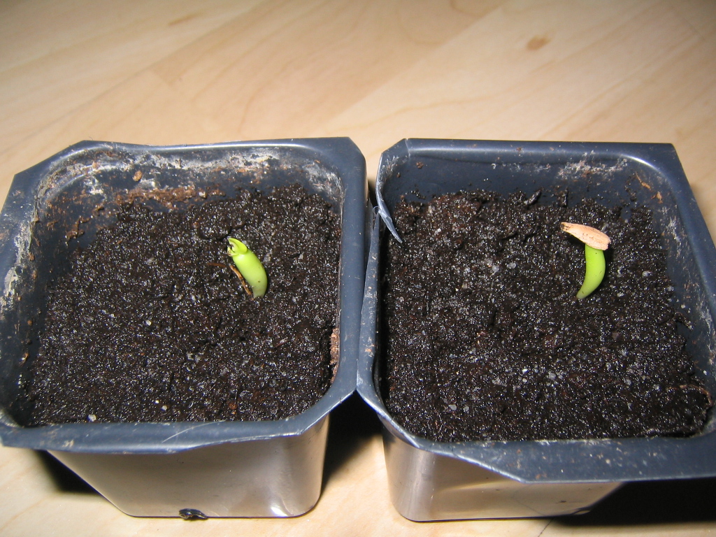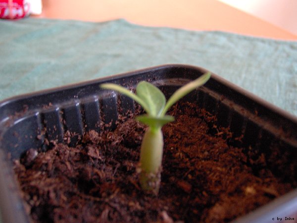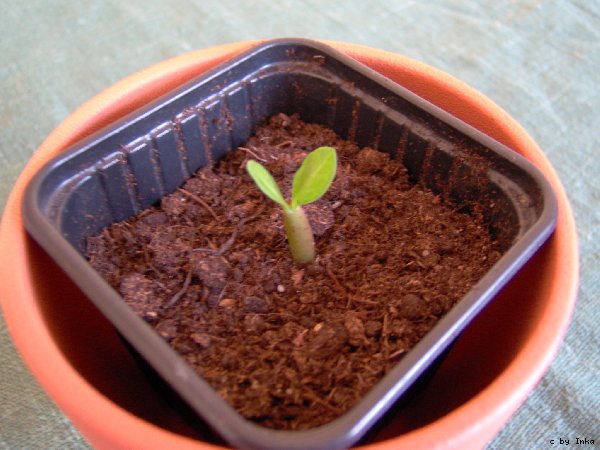 Am 12. 03.07 hab' ich den Winzling nun in Erde umgepflanzt und bis