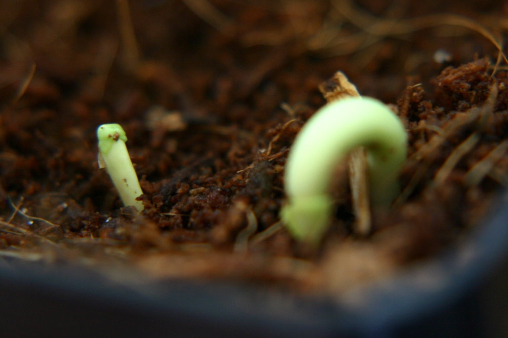 Nr.2 ist wirklich winzig im Vergleich zu Nr.1, hat aber für ihre größe schon eine ordentliche Wurzel und auch die Keimblätter kann man schon sehen.
