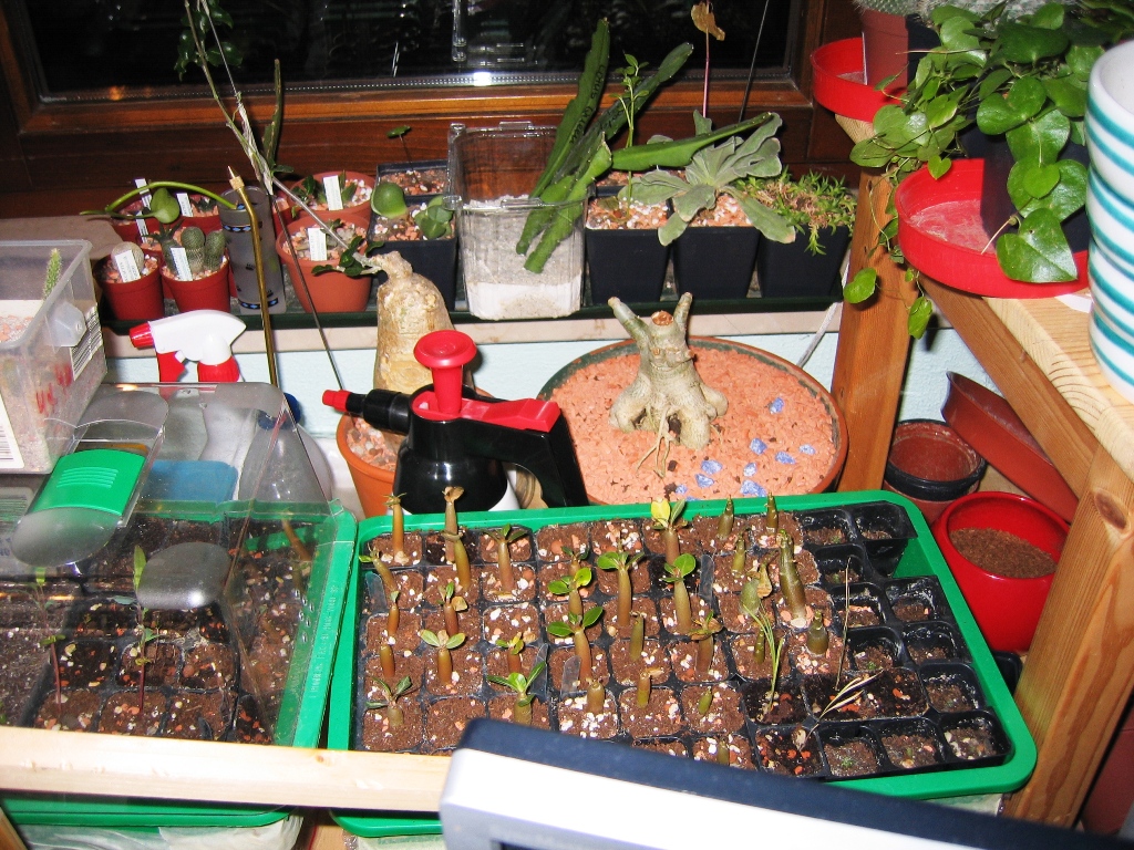 @christianS ich habe mal einen wüstisamen, ohne jegliche vorbehandlung und andere maßnahmen wie bodenheizung oder gewächshaus, auf seramis gelegt und den topf auf meinen schreibtisch gestellt. der ist gekeimt und heute meine größte wüsti, mit dem schönsten caudex. das gießen ist ganz einfach, weil, wie yaksini schon schrob, du einfach nur den caudex beobachten musst. wird er schrumpelig gießt du, wenn nicht dann nicht. jetzt noch ein süd-fenster oder ein platz im freien und es kann eigentlich nix mehr schief gehen.