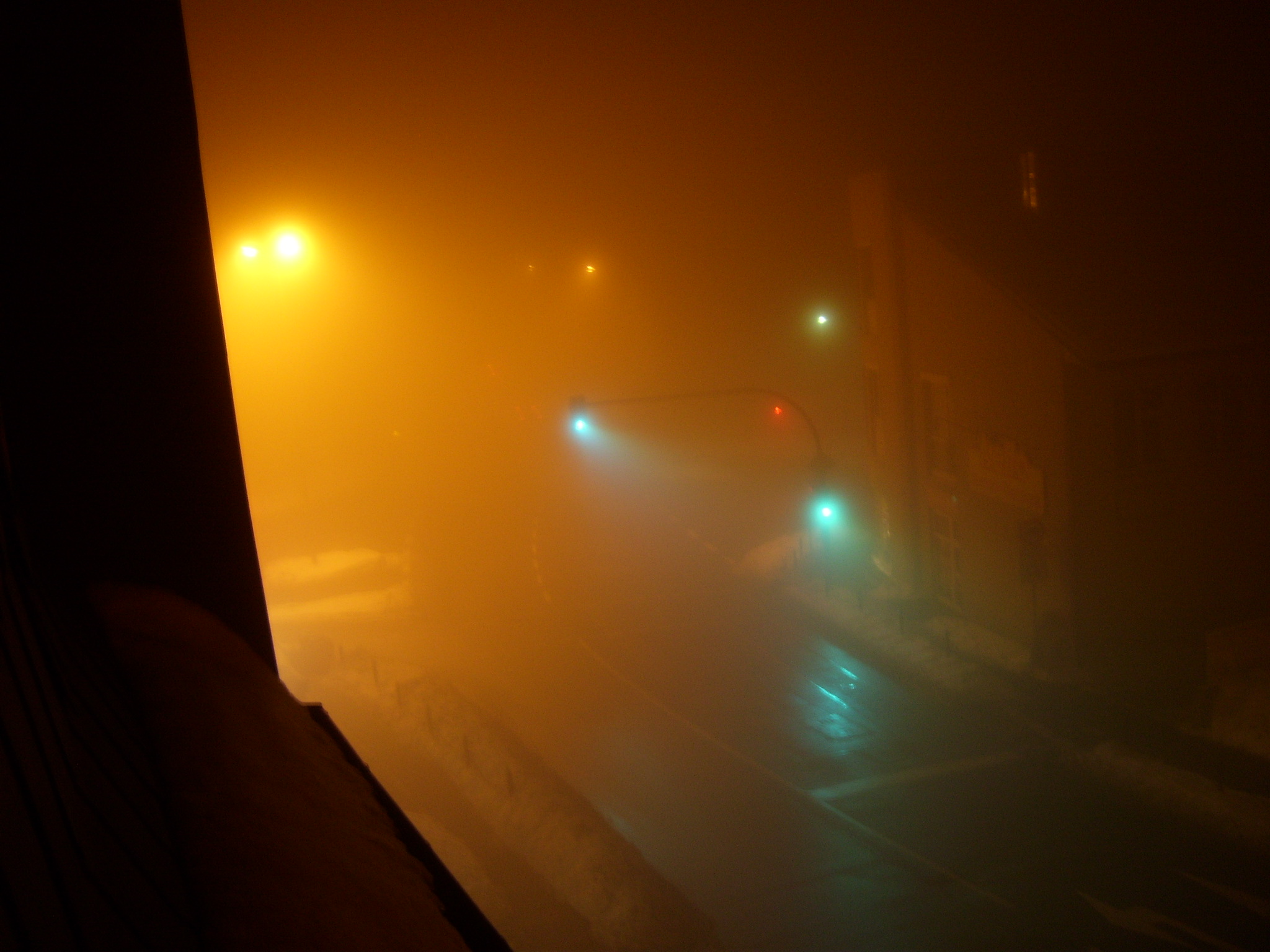Gestern (15.01.) war es unheimlich gespenstisch draußen. Nur gut, das ich net raus mußte. Wenn man das Fenster geöffnet hat, hatte man das Gefühl vor einer Gardiene zu stehen. Die Nebelschwaden waren zum greifen nah.