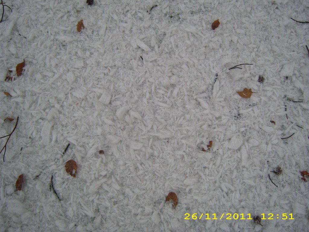 Die Eissplitter, die durch den Wind von den Bäumen fielen, waren teilweise so groß wie Buchenblätter
