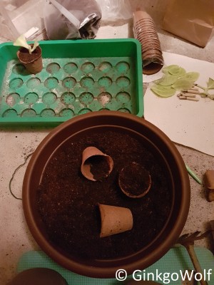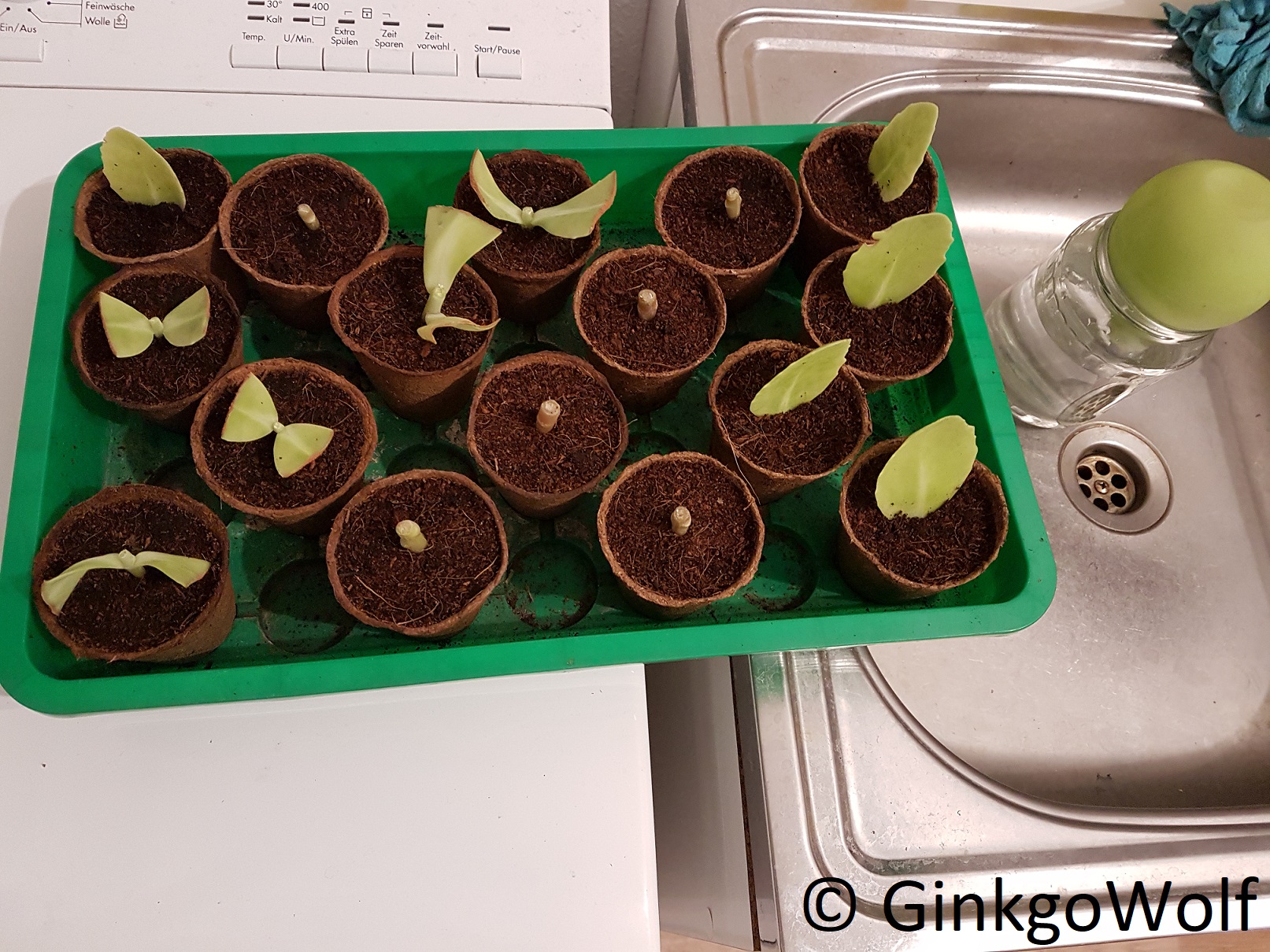Mit der Ballbrause habe ich die Anzucht gut angefeuchtet, mit dem Deckel des Zimmergewächshauses abgedeckelt und dann an seinen vorläufigen Platz am Schlafzimmerfenster hingestellt.