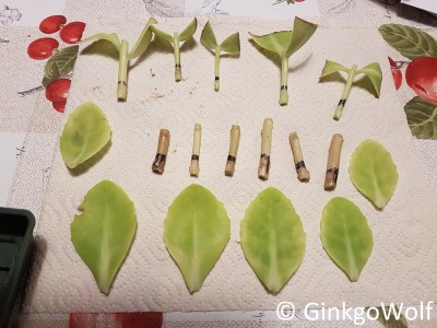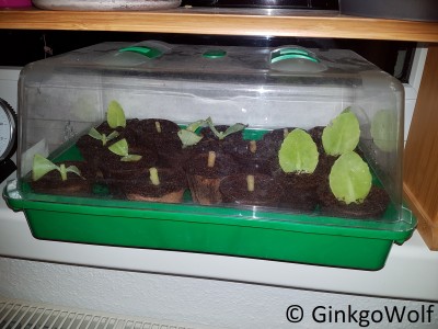 Vorläufig deshalb, weil ich die Erstkultivierung erstmal drinnen mache (die Bewurzelung), weil die Temperaturen dort relativ konstant sind, während draußen inzwischen schon merkbare Tag-Nacht-Wechsel stattfinden und eine Bewurzelung dadurch meistens gebremst bzw. abgeschwächt wird. Wenn die Stecklinge austreiben und die Temperaturen es zulassen, dürfen sie raus auf den Balkon.