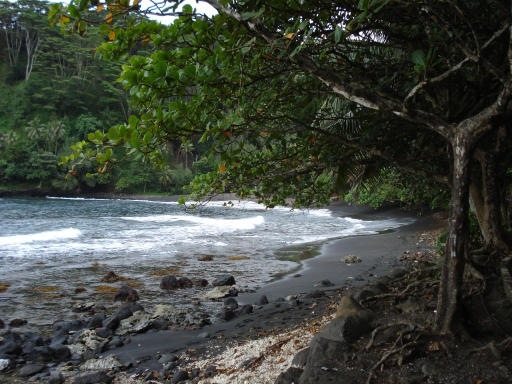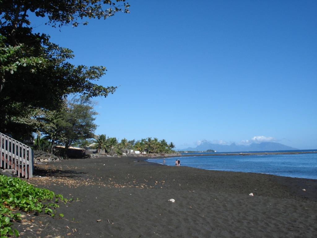 Tahiti, die größte Insel, ist eine erloschene Vulkaninsel (zwei ehemalige Vulkane), insofern sind die meisten Strände tiefschwarz:
