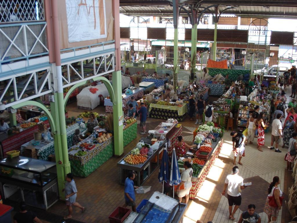 Die Markthalle im Zentrum von Papeete ist quirrliger Treffpunkt der Einheimischen und Touristen. Dort gibt es alles zu kaufen, von fangfrischem Fisch, knackigem Gemüse und duftendem Obst bis hin zu diversen Schönheitsprodukten (Tiareöle und Körpermilch aus Kokos), geflochtenen Körben, Handtaschen, Hüten, farbenprächtigen Pareus, Kleidern und Hemden und natürlich Permuttschmuck in allen Variationen: