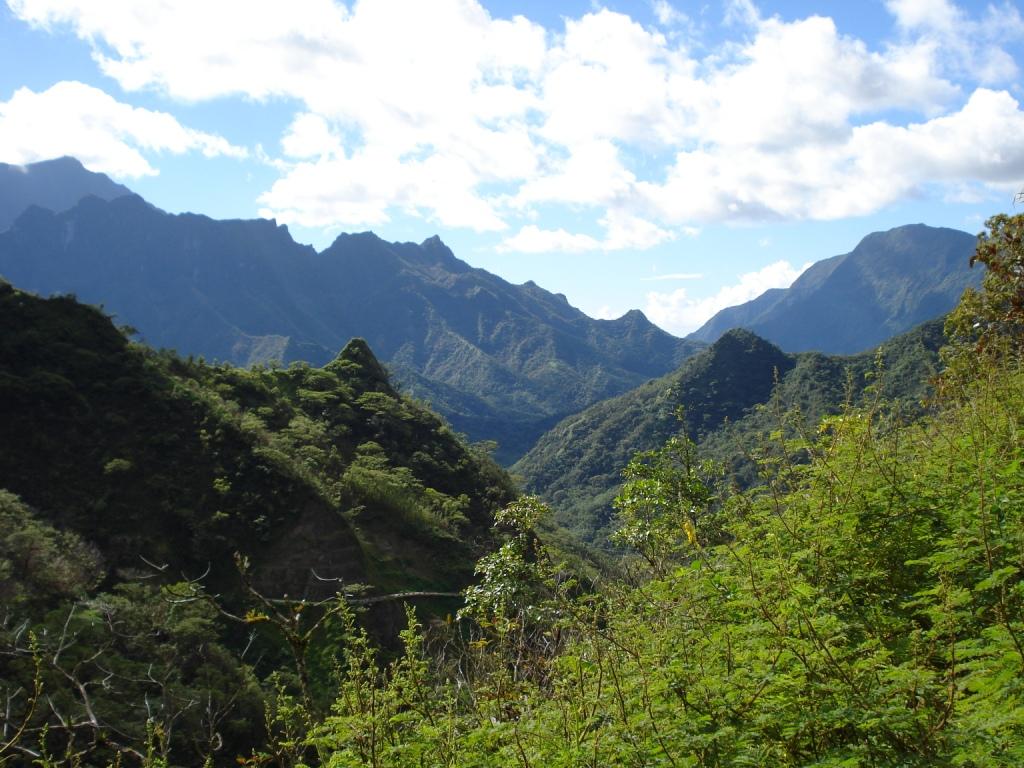 Das Hinterland von Tahiti ist von Bergen geprägt, die aus dem ehemaligen Vulkanen entstanden