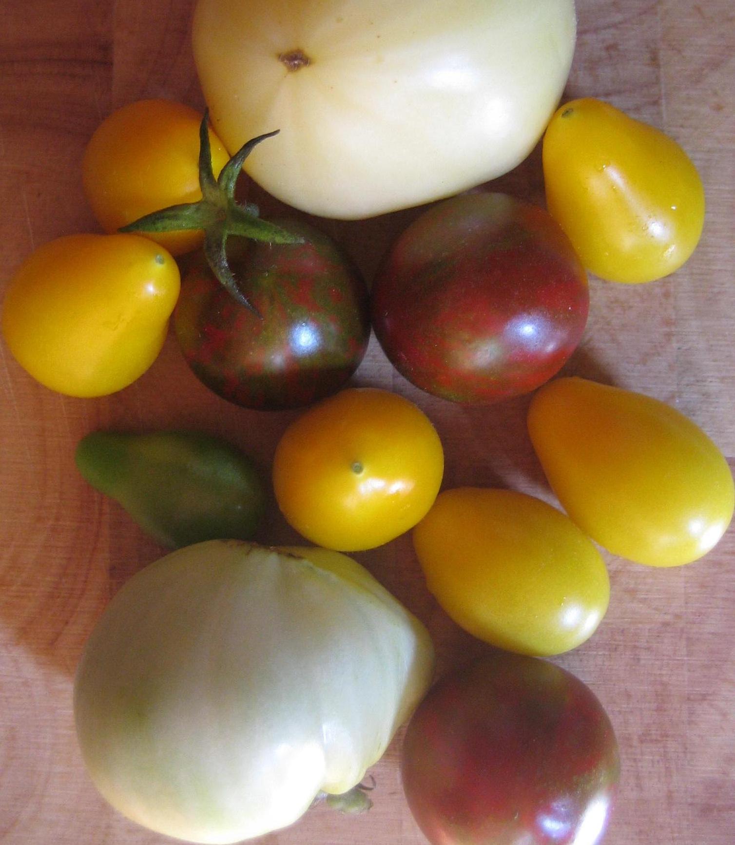 Hier unter anderem die gelbe Flaschen Tomate und die weiße Tomate...