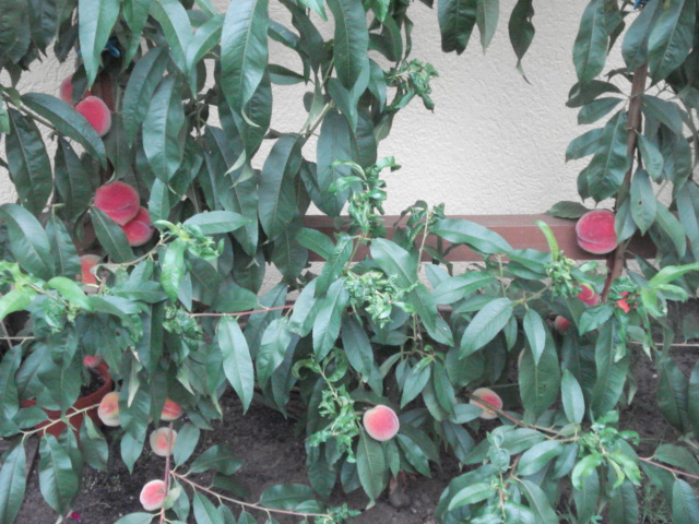 Zu meinem grossen Erstaunen sind die beiden Pfirsichbäume sehr gewachsen, und das, obwohl sie auch noch reichlich getragen haben. Insgesamt hatten wir zwischen 30 und 40 Früchte an beiden Bäumen.