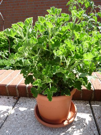 Die Duftpelargonie "Torento" wird als Cola-, manchmal auch Ingwerpelargonie beschriebn und erfüllt diese Vorstellung auch vollständig. Schon bei zartem Reiben setzt sie den typischen Colageruch frei.