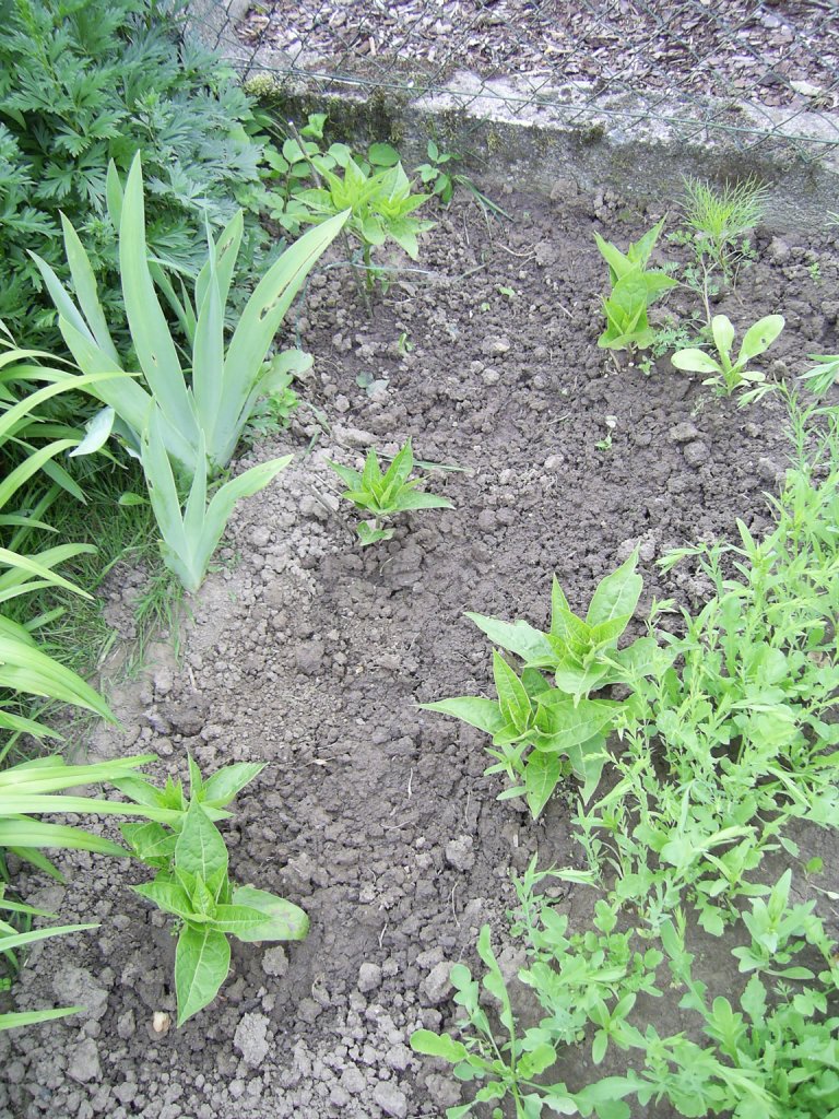Mirabilis-Beet Anfang Juni (die Pflanzen aus den Knollen, 5 Stück)