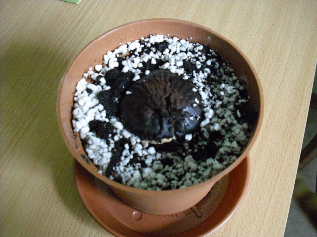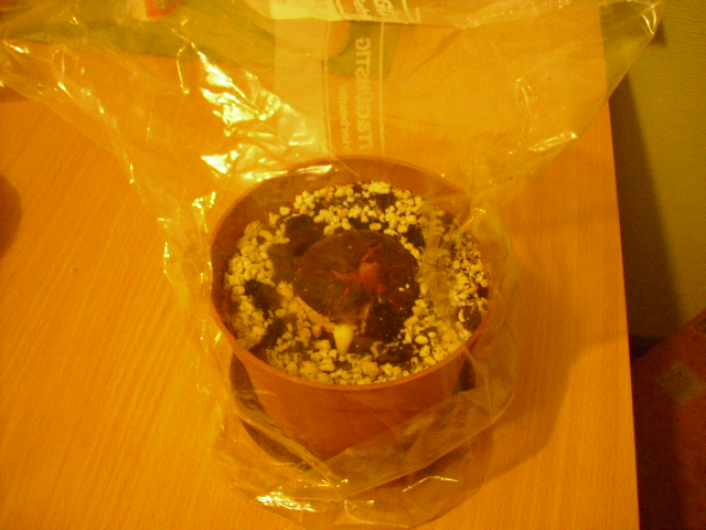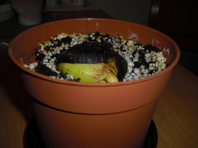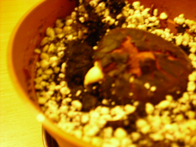 Hier habe ich die "Bohne" in ein Gemisch aus halb Erde/halb Perlite gesetzt.