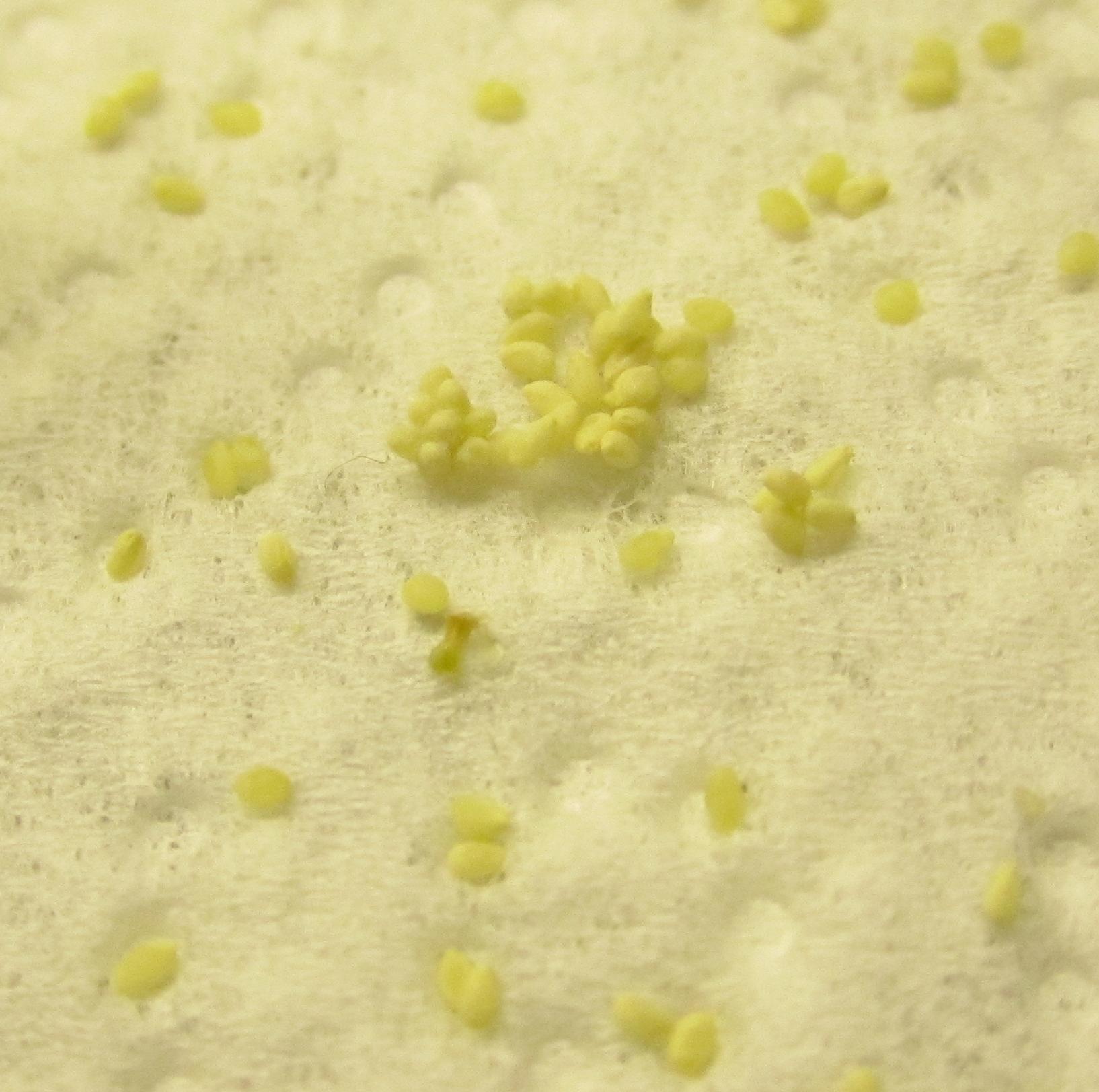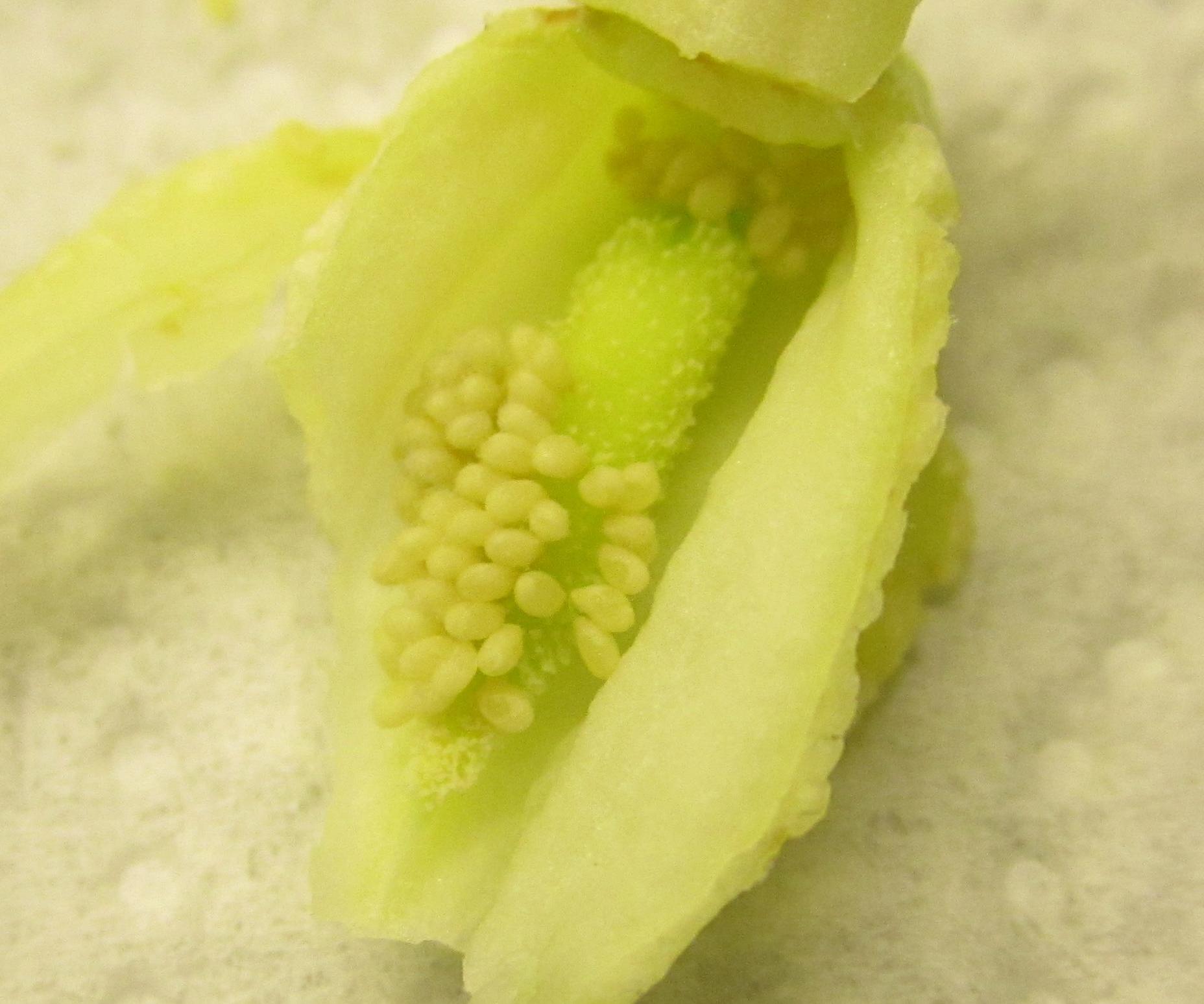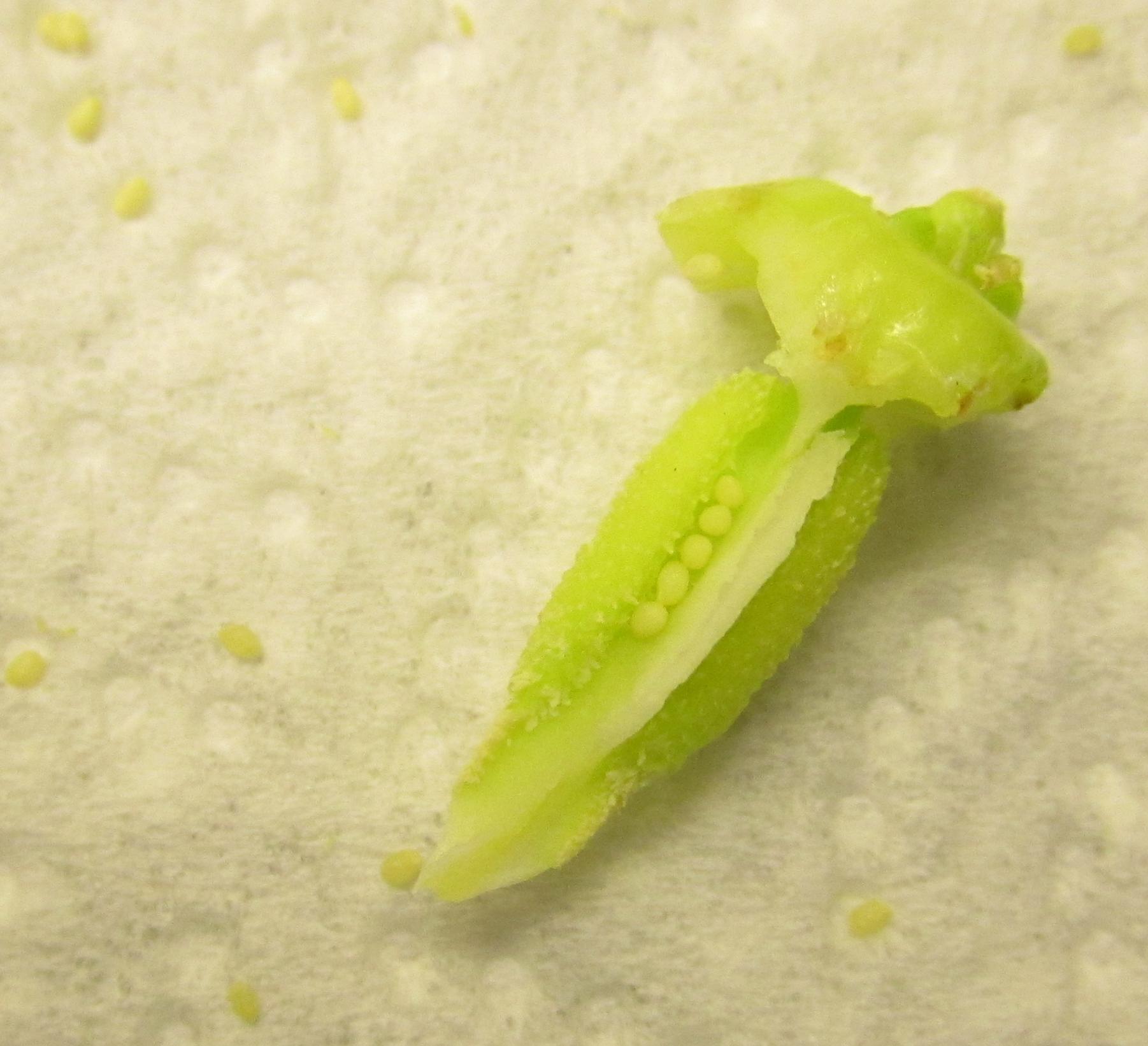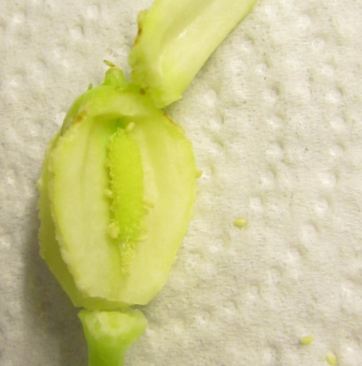 Ein Micro-Pinselchen was sehr lang ist,um auch tief genug mit meinen Pollen nach unten zu gelangen.Natürlich muß man sehr vorsichtig sein,um den Blütenstängel nicht zu verletzen.Einfaches Bestäuben der Blüten führt zu Mißerfolg !