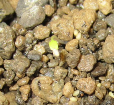 Ich lege die Samen auf feuchte Perlite und schließe den Deckel meines beheizten Zimmertreibhauses,oder einer Frischhaltebox,die ich auf die Heizung stelle,je nachdem was gerade zur Verfügung steht.Einmal am Tag wird es für ca.1 Stunde gelüftet.Nach ca.3-4 Wochen erblickten diese Kleinen das Licht der Welt ( 1.+ 2. Photo ). Diese Samen waren schon über 1 Jahr alt.