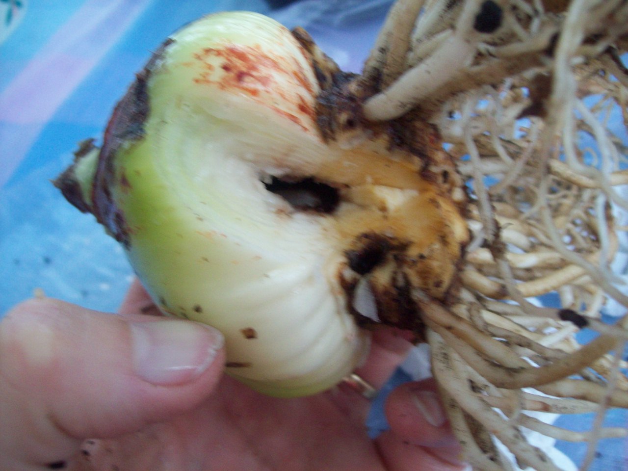 Leider sind manche Zwiebeln auch noch stärker befallen.