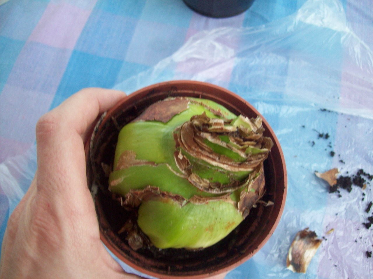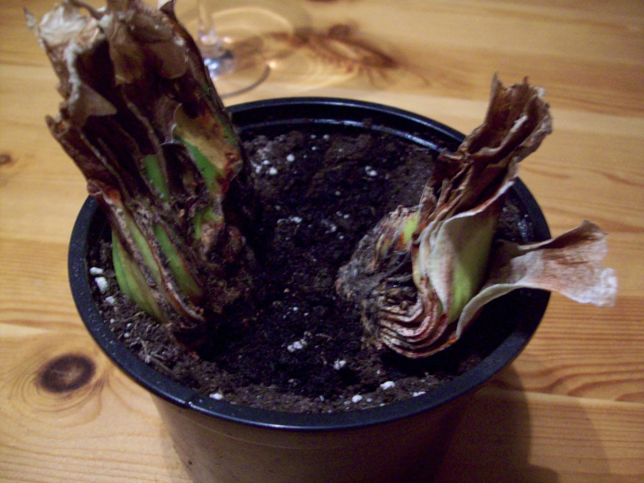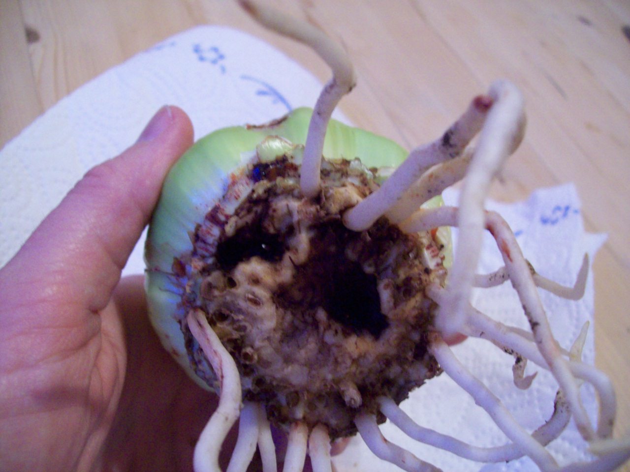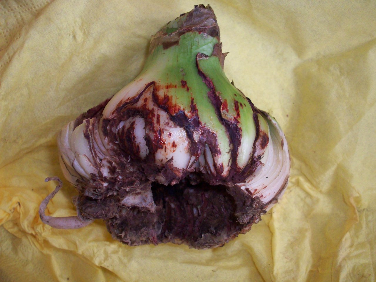 Mir ist im Winter 2008/2009 eine Amarylliszwiebel in die Hände gefallen, die zuerst ganz gut aussah, aber als ich sie umdrehte fast völlig zerstört war.