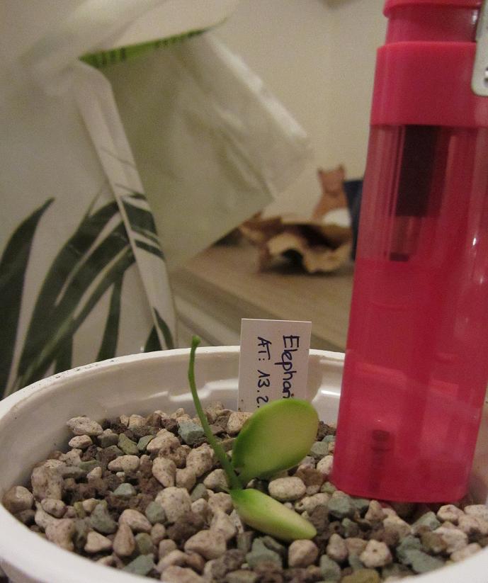 dieser Ele hier geht es von allen am Besten. Sie hat zwar ein paar gelbe Blättchen, gefällt mir sonst aber vom Wuchs her super gut. Ele 1 (die mit den Gammelkeimblättern) lebt noch, sieht aber sehr schlecht aus. Und Ele 3 ist so lang und "gagelig" geworden.