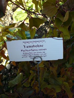 habe im Herbst Brutknöllchen einer Pflanze gesammelt, die mit Yamsbohne, Pachyrrhizus erosus beschriftet war. Ich habe nach der Pflanze gegoogelt und bin etwas verwirrt. Die Blätter sehen anders aus als auf meinem Foto, von Brutknöllchen ist nirgends sie Rede. Was habe ich gesammelt??