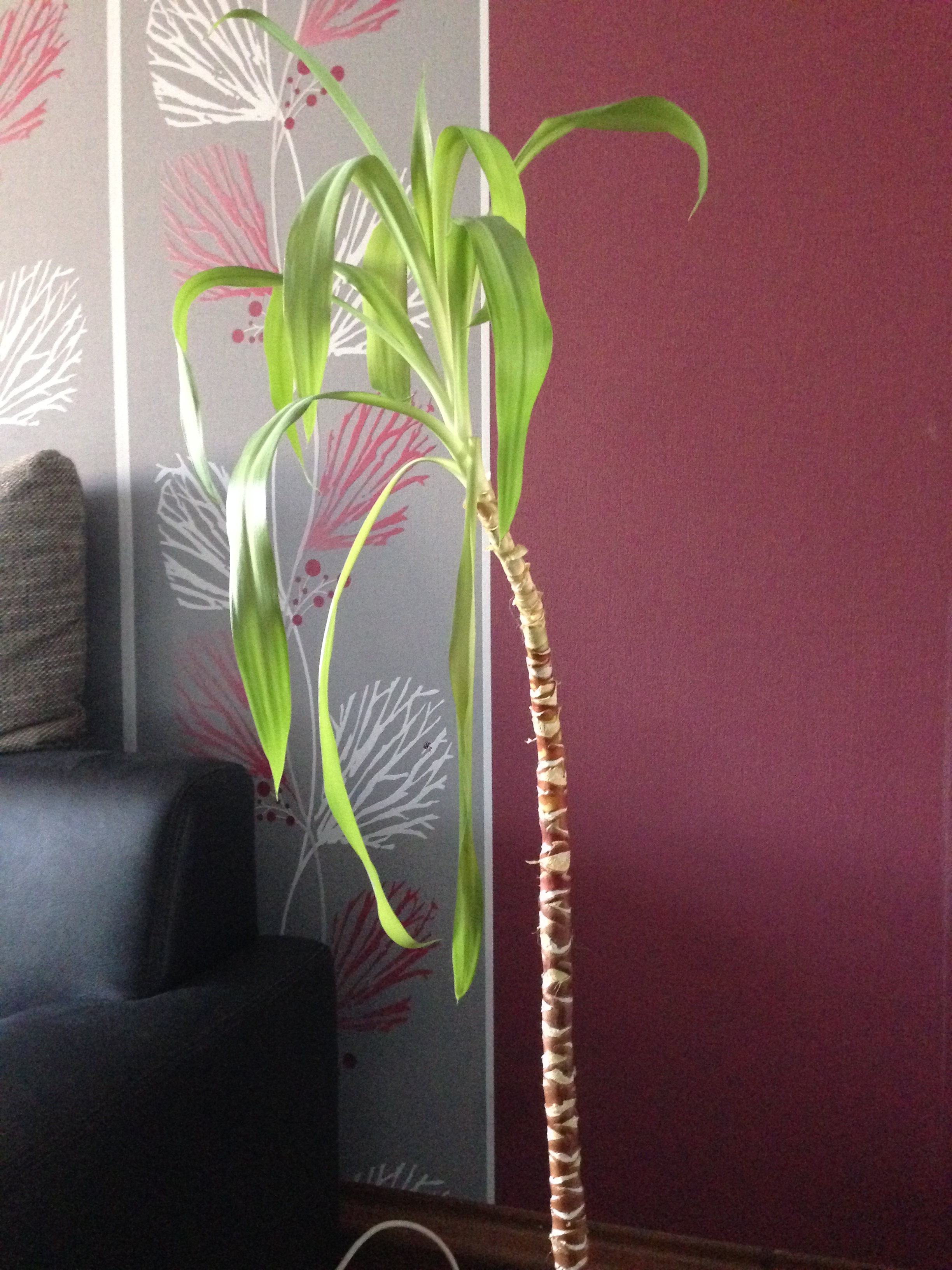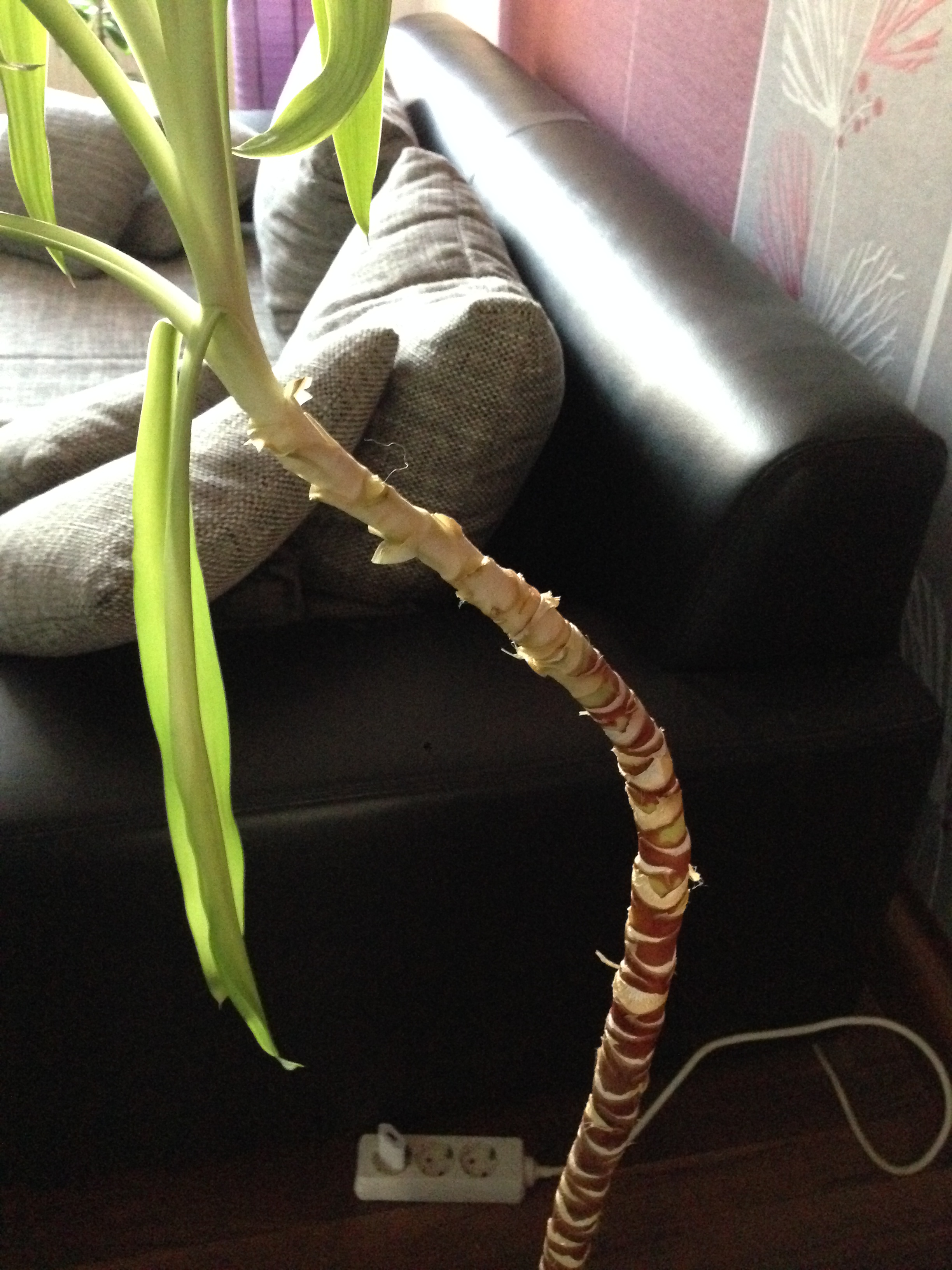 Sie wächst durch nach oben austreibende Blätter, die dann recht schnell schlapp werden und nach unten hängen. Am Stamm hat er dann diese typischen Blattnarben.